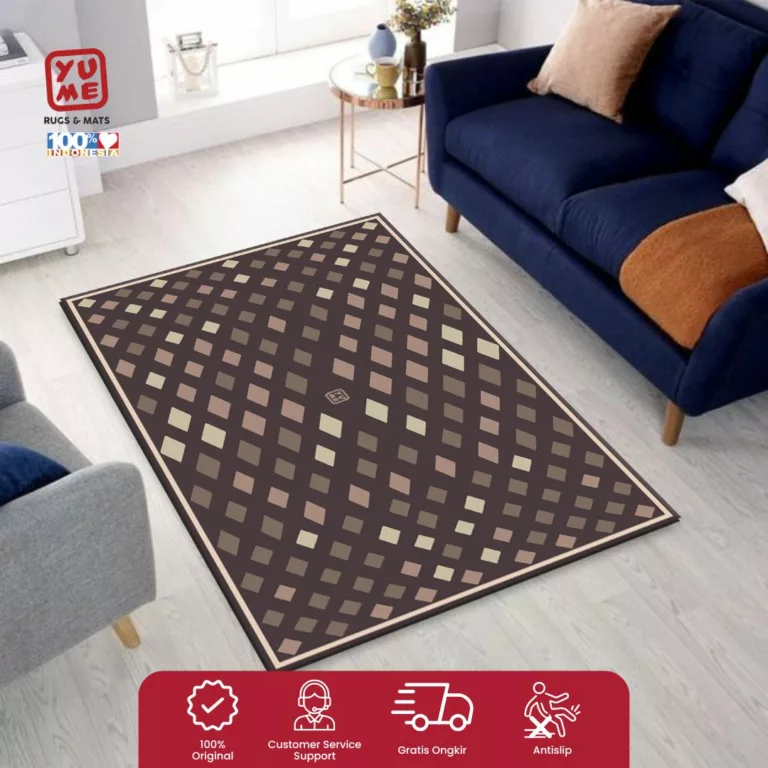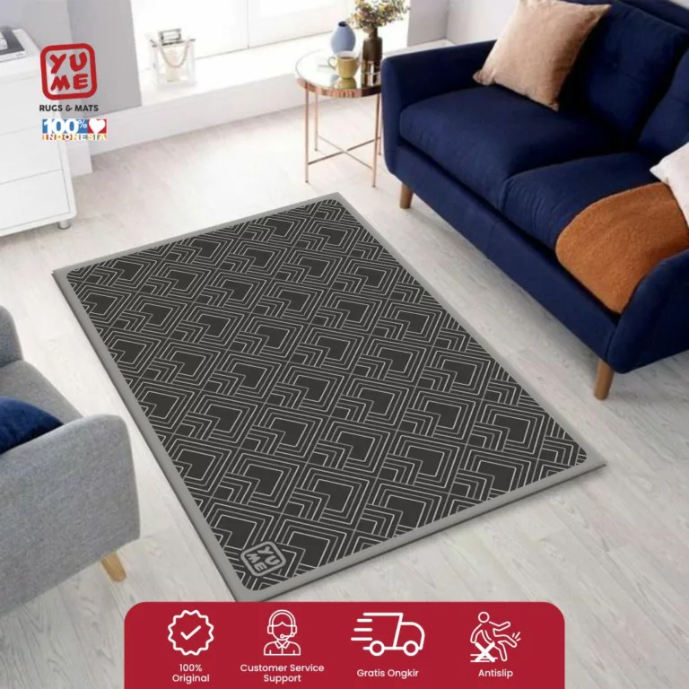 YUME Karpet Lantai / Keset Anti Selip ukuran 100×150 Motif Squares