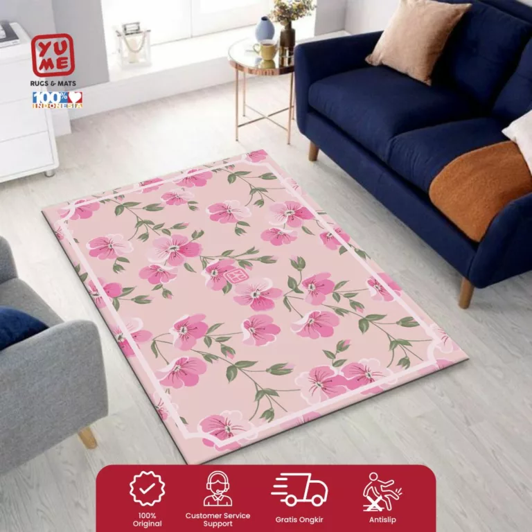 YUME Karpet Lantai / Keset Anti Selip ukuran 100×150 Motif Blooming Pink