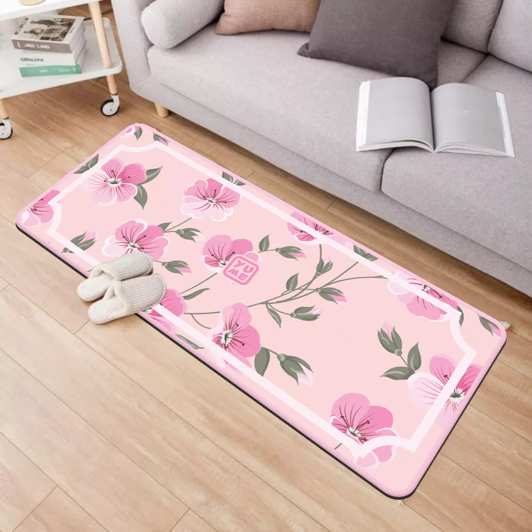 YUME Karpet Lantai / Keset Anti Selip ukuran 50×120 Motif Blooming Pink