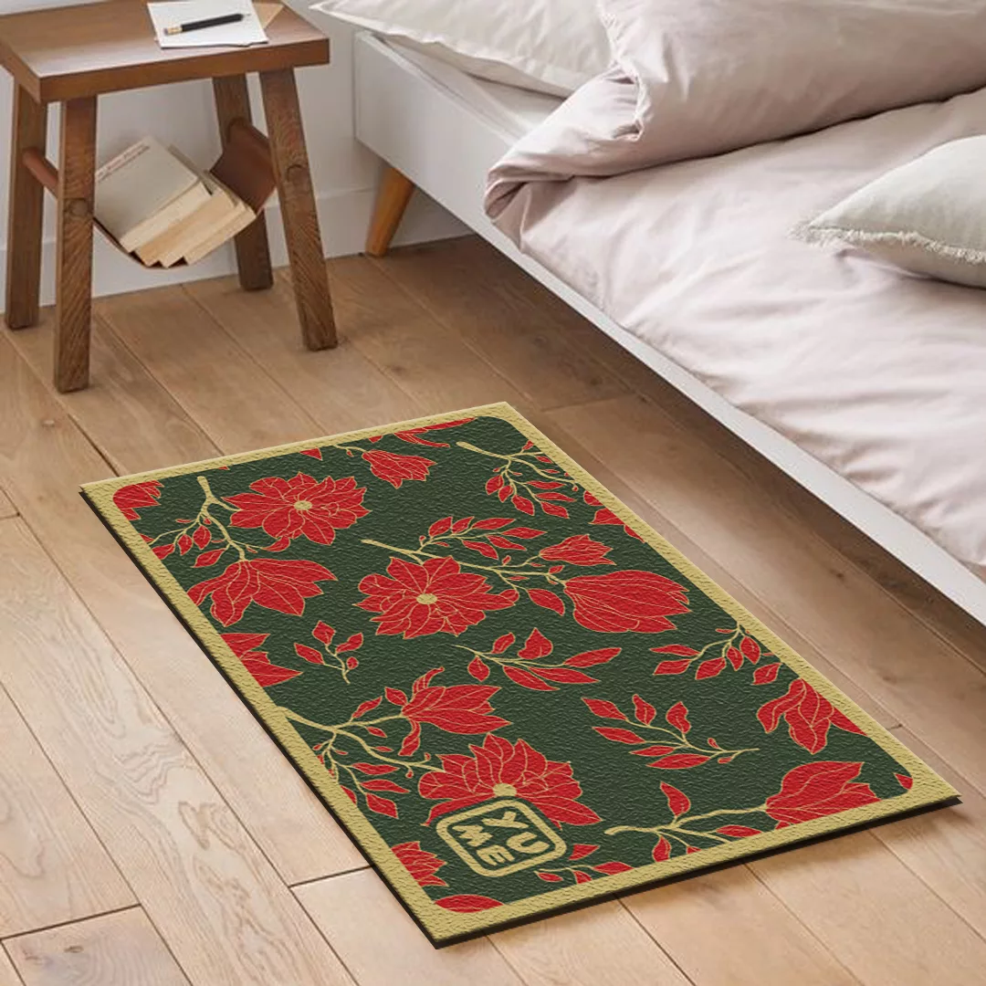 YUME Karpet Lantai / Keset Anti Selip ukuran 50×80 Motif Flowering Red