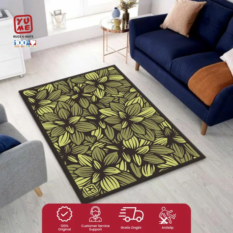 YUME Karpet Lantai / Keset Anti Selip ukuran 100×150 Motif Hosta Green